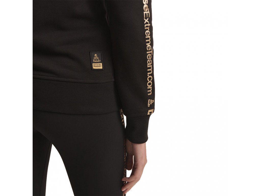 Dámská mikina na zip v černé barvě vyrobená z bavlny s příměsí polyesteru z oficiální dakarské kolekce, zdobená zlatým logem Dakar a zlatými nápisy na rukávech. Pro zachování kvality potisku a materiálu nedoporučujeme sušit oblečení v sušičce.