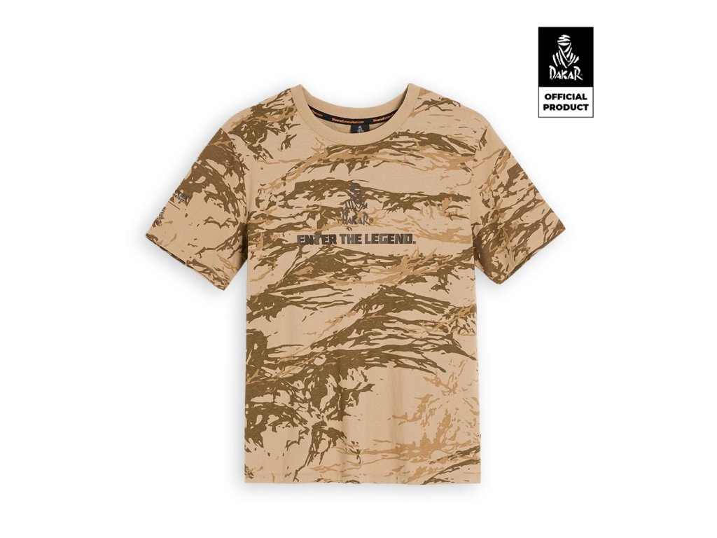 Tričko z oficiální kolekce Dakar s maskáčovým vzorem – kombinace odvážného designu a pohodlí. Vzorek camo, logo na hrudi a klasický střih z bavlny dělají z tohoto kousku stylový základ pro fanoušky, kteří nechtějí být jen součástí davu.